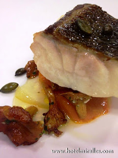 LUBINA SALVAJE A LA BRASA CON CALABAZA Y REBOZUELOS